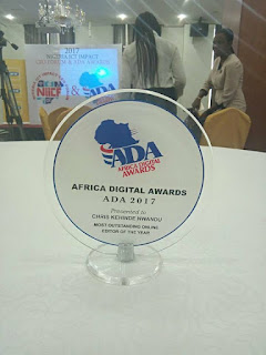 CKN News Assistant Editor Abiola Alaba Peters Receiving (African Digital Award (ADA AWARD)